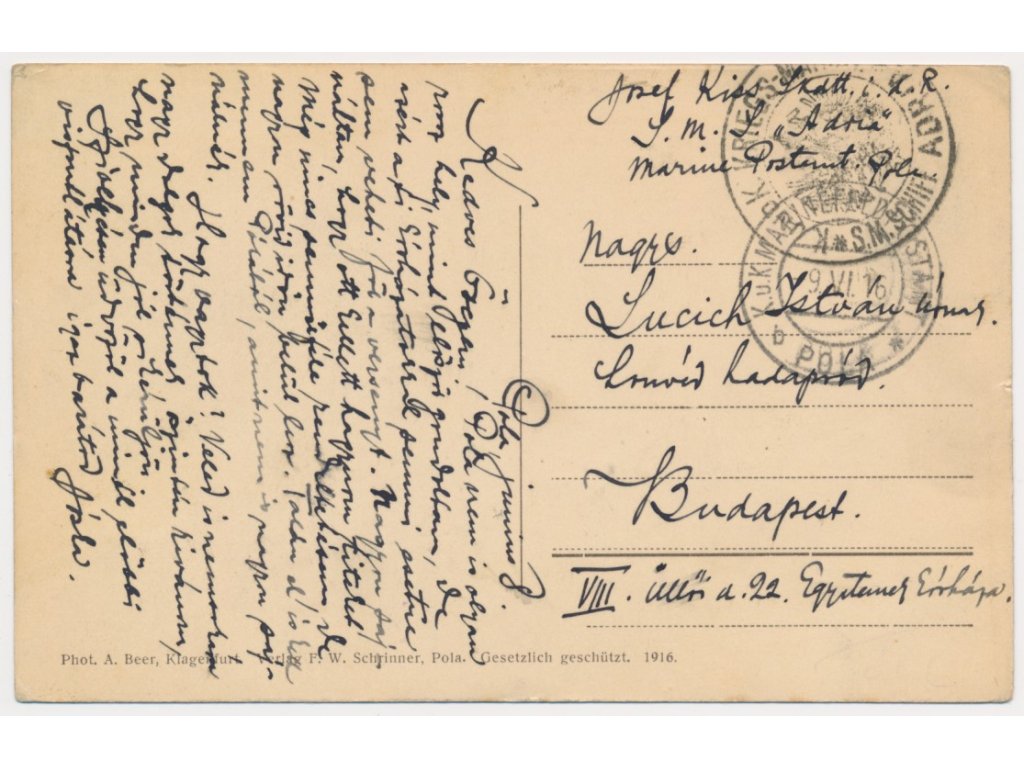 K.U.K. Kriegsmarine, poštovně použitá pohlednice na svaz lodí třídy Tegetthoff, 1916