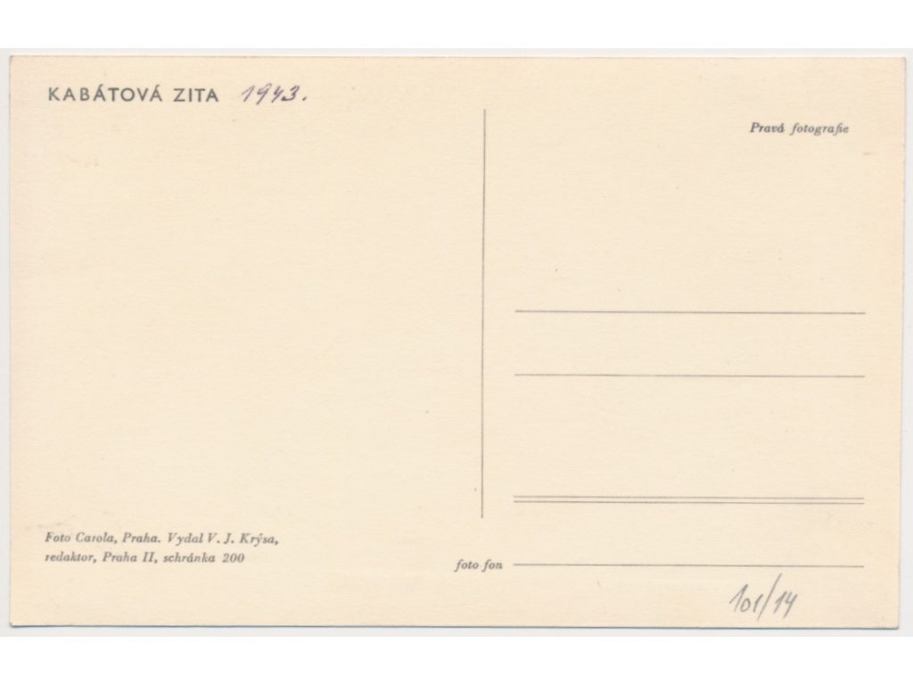 Kabátová Zita (1913-2012), česká herečka, portrétová pohlednice s vl. podpisem