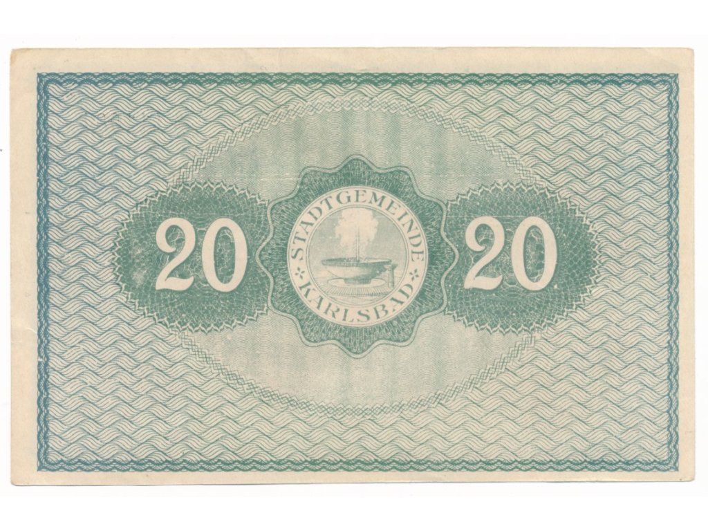 Karlovy Vary (Karlsbad), 20 Korun, 1919, série C, slušný oběhový stav