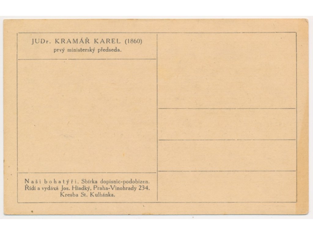Kramář Karel (1860-1937), politik, Portrétová pohlednice, cca 1924