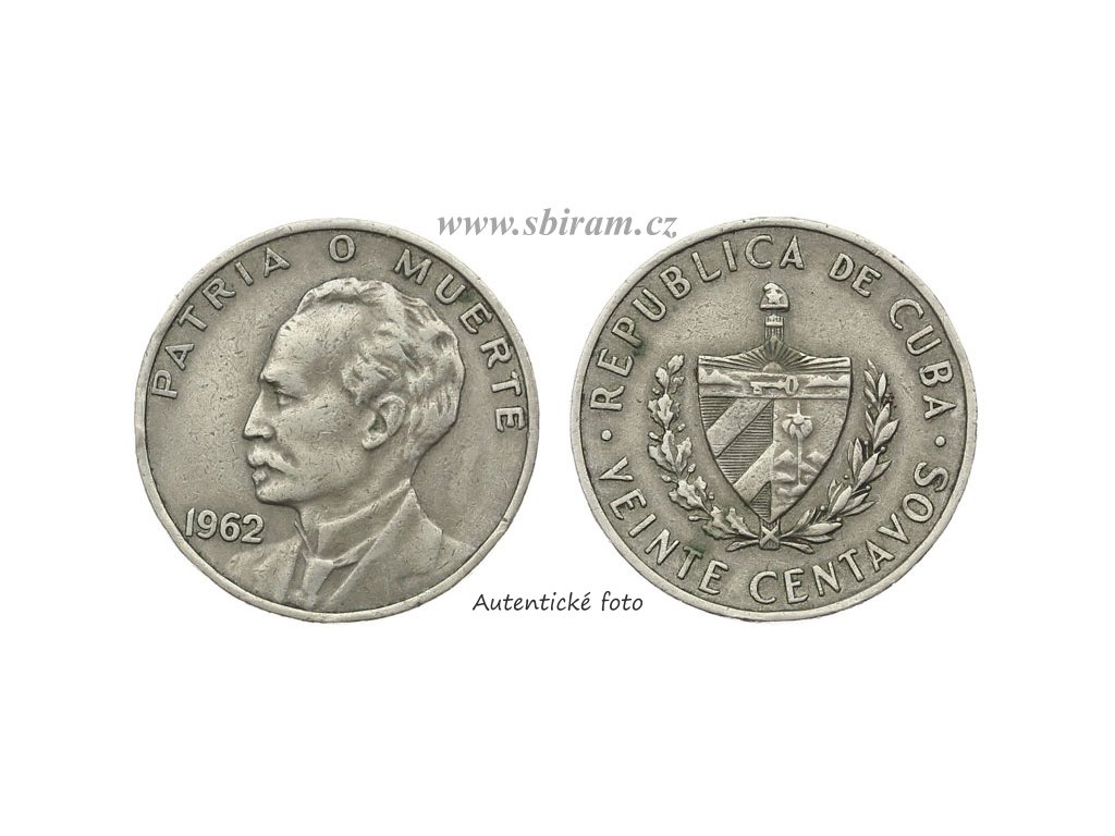 Kuba, mince 20 Centavos, 1962...viz autentické foto