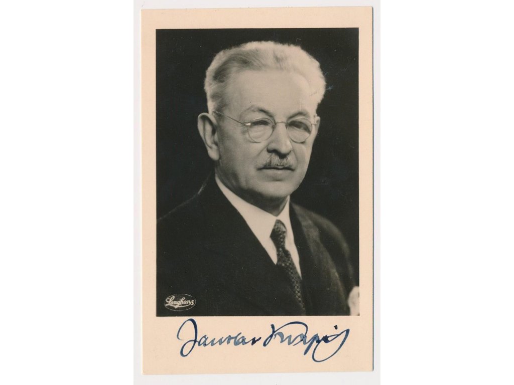 Kvapil Jaroslav (1868-1950), básník a spisovatel, portrétová pohlednice atéliru Langhans s vlastnoručním podpisem, nedatováno