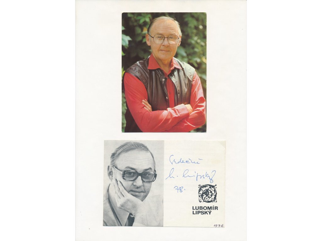 Lipský Lubomír (1923-2015), český herec, sběratelský list s vl. podpisem