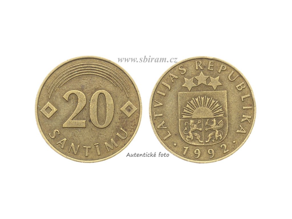 Lotyšsko, mince 20 Santimu, 1992...viz autentické foto