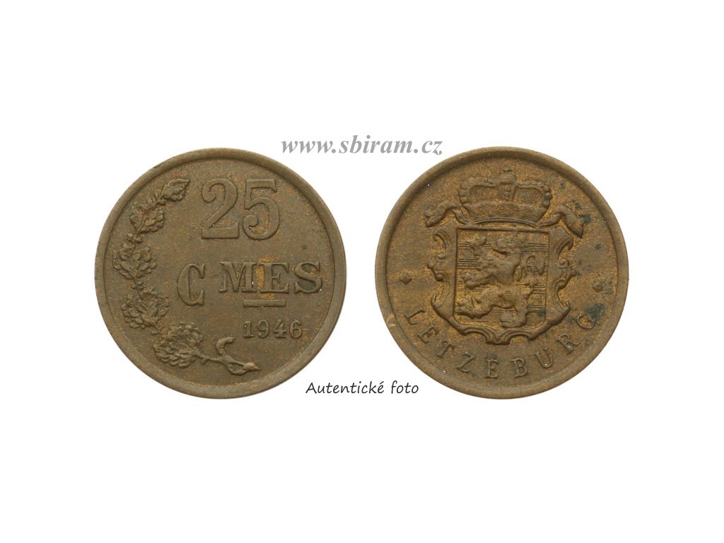 Lucembursko, mince 25 Centimes, 1946, stav 1/1...viz autentické foto