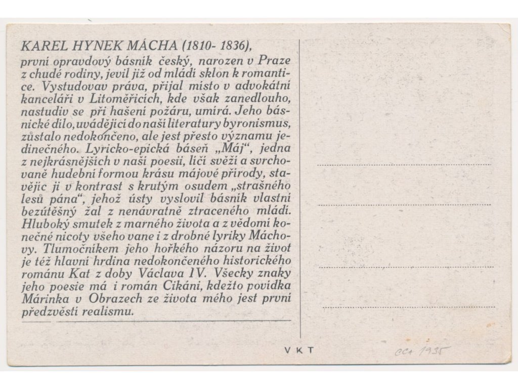 Mácha Karel Hynek (1810-1836), básník, Portrétová pohlednice, cca 1935