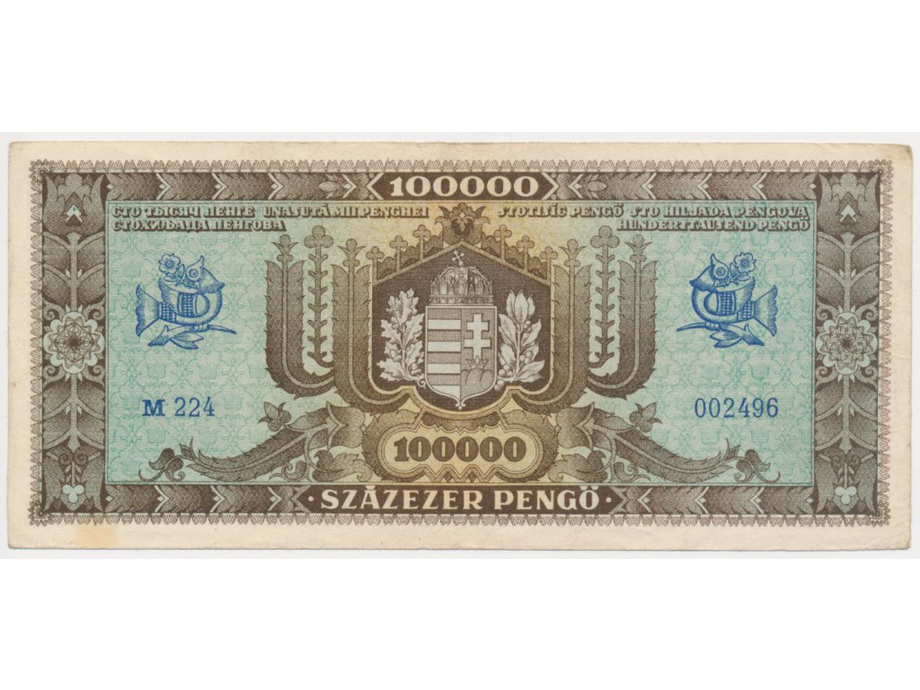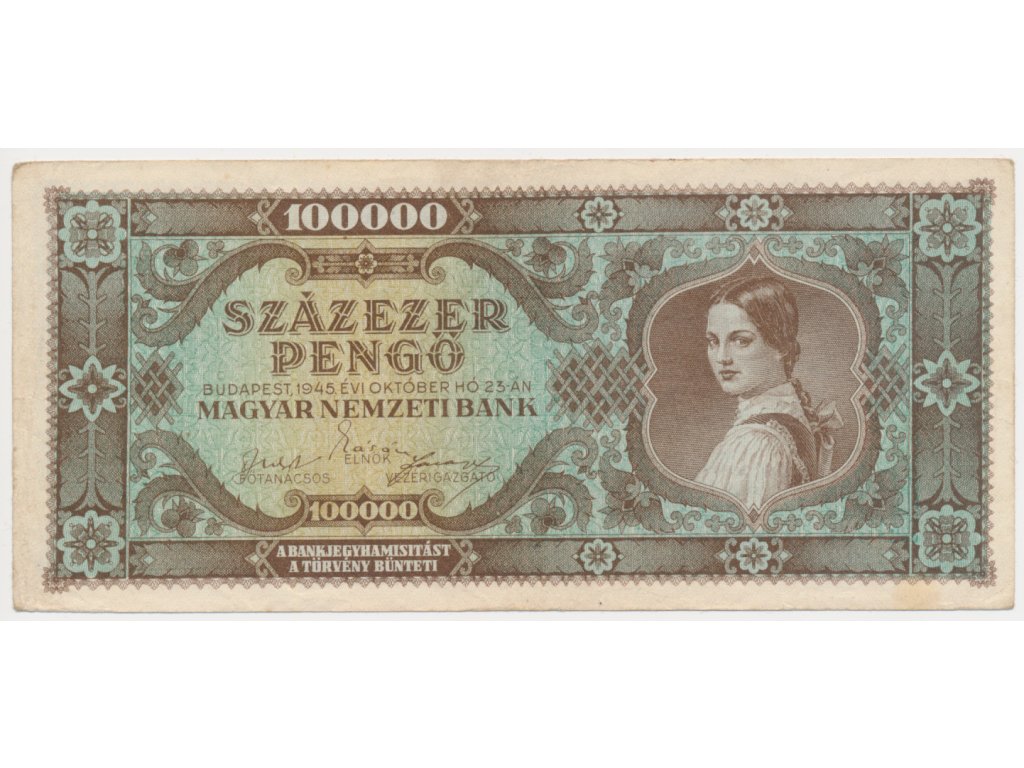 Maďarsko, 100 000 Pengö, 1945, stav 2