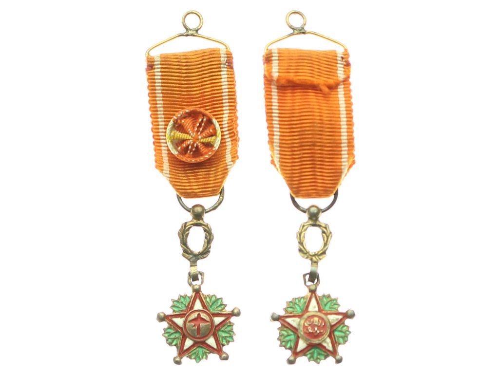 Maroko, miniatura Řádu Ouissama Alaouiteho, IV. třída, pro důstojníky, stužka, rozeta, stav 1/1/1...viz autentické foto