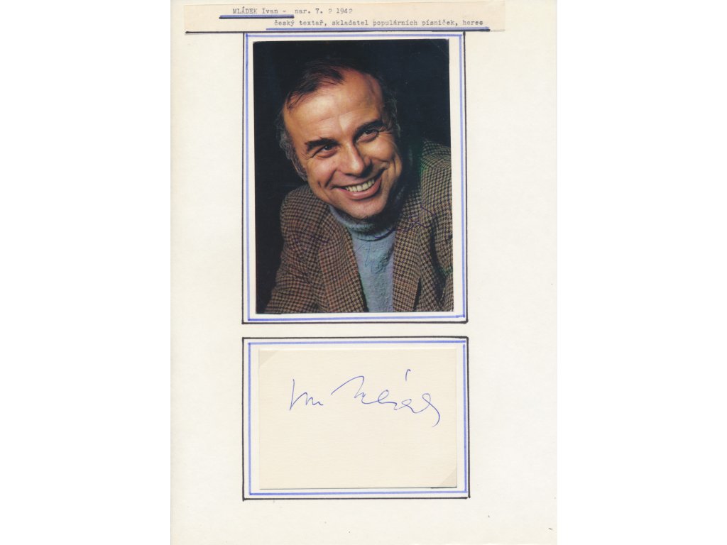 Mládek Ivan (1942), český zpěvák, textař, sběratelský list s vl. podpisem