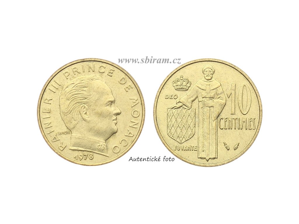 Monako, mince 10 Centimů, 1978...viz autentické foto