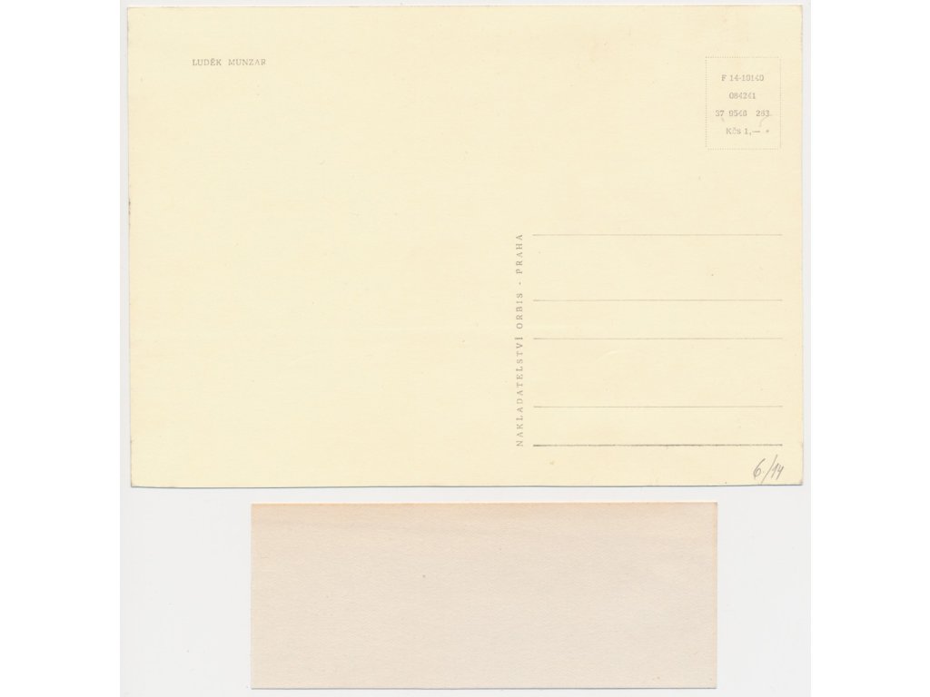 Munzar Luděk (1933-2019), český herec, portrétová pohlednice o rozměrech cca 12x17cm s vlastnoručním podpisem (datováno 1964) a sběratelská kartička s vlastnoručním podpisem (datováno 1964)...viz autentické foto