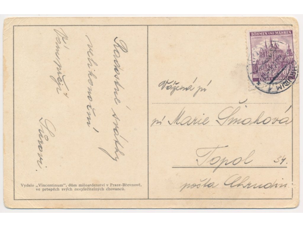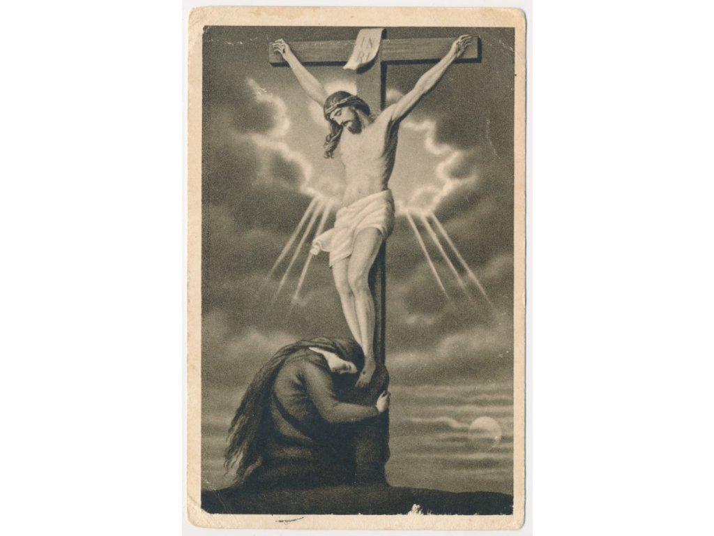 Námětová náboženská pohlednice, Ježíš Kristus na kříži, cca 1940