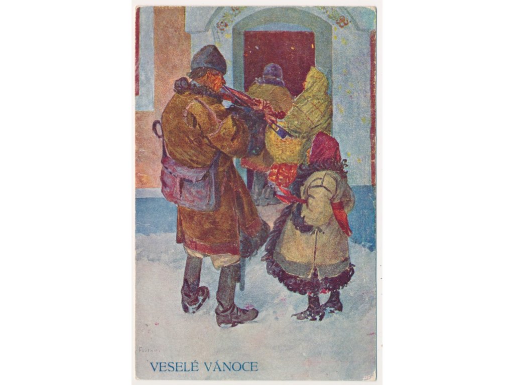 Námětová pohlednice, "Veselé Vánoce", cca 1912
