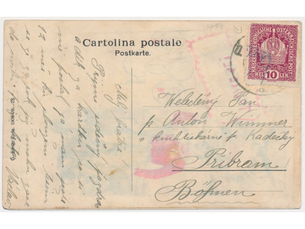 Námořnictvo, 4 záběrová koláž "Saluti da Pola", mj. voják námořní pěchoty, 1908