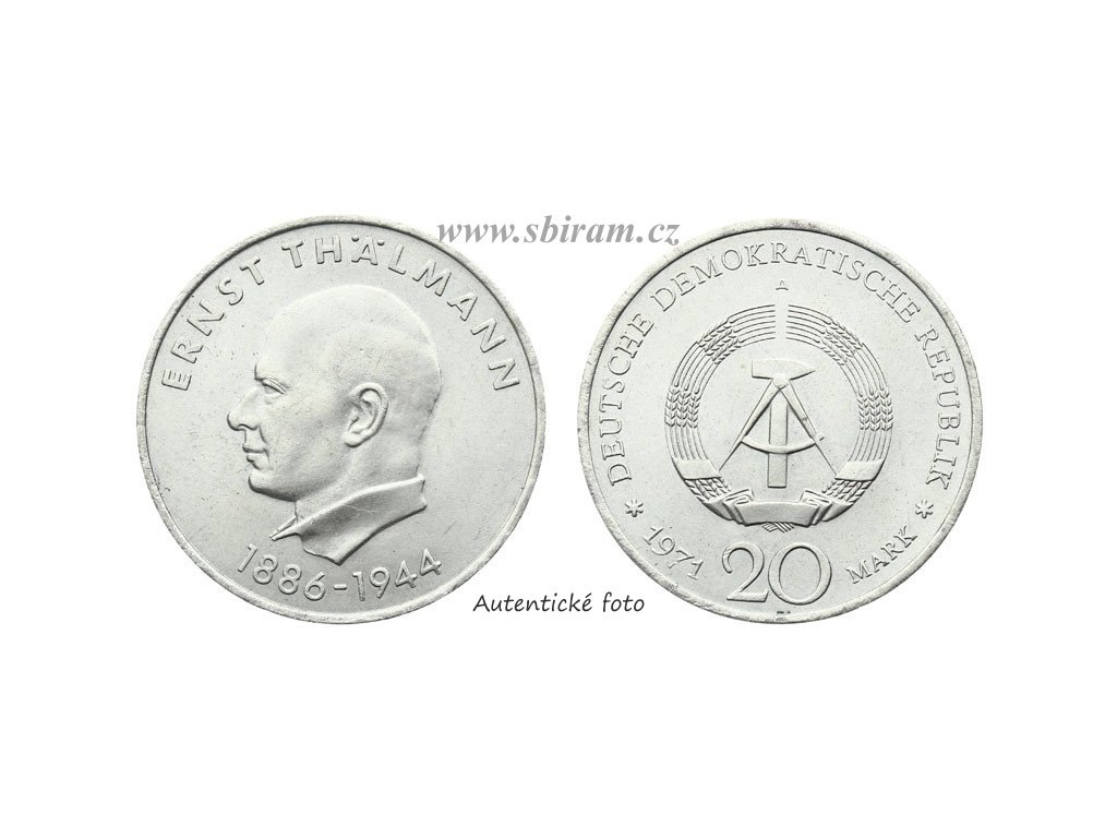 NDR, pamětní mince 20 Marka, 1971, Ernst Thälmann, stav 1/1...viz autentické foto