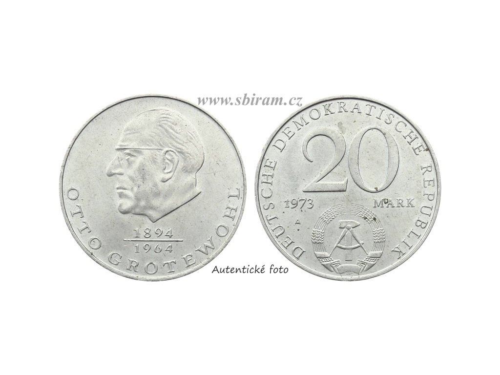NDR, pamětní mince 20 Marka, 1973, Otto Grotewohl, stav 1/1