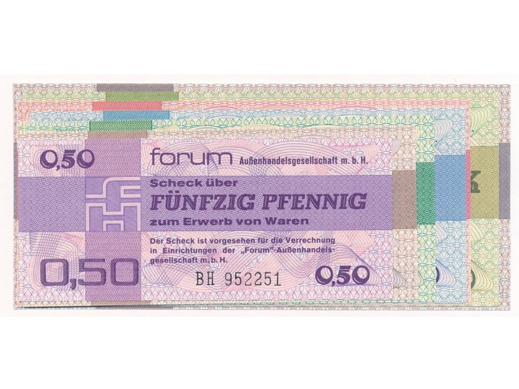 Německo, 0,5 - 500 M, 1979, kompletní sada poukázek FORUM, (obdoba TUZEX), ojedinělý výskyt, 7 kusů, luxusní sběratelská jakost UNC .....viz autentické foto