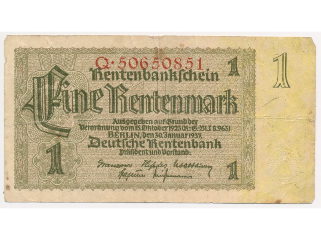 Německo, 1 Rentenmark, 1937, oběhový stav