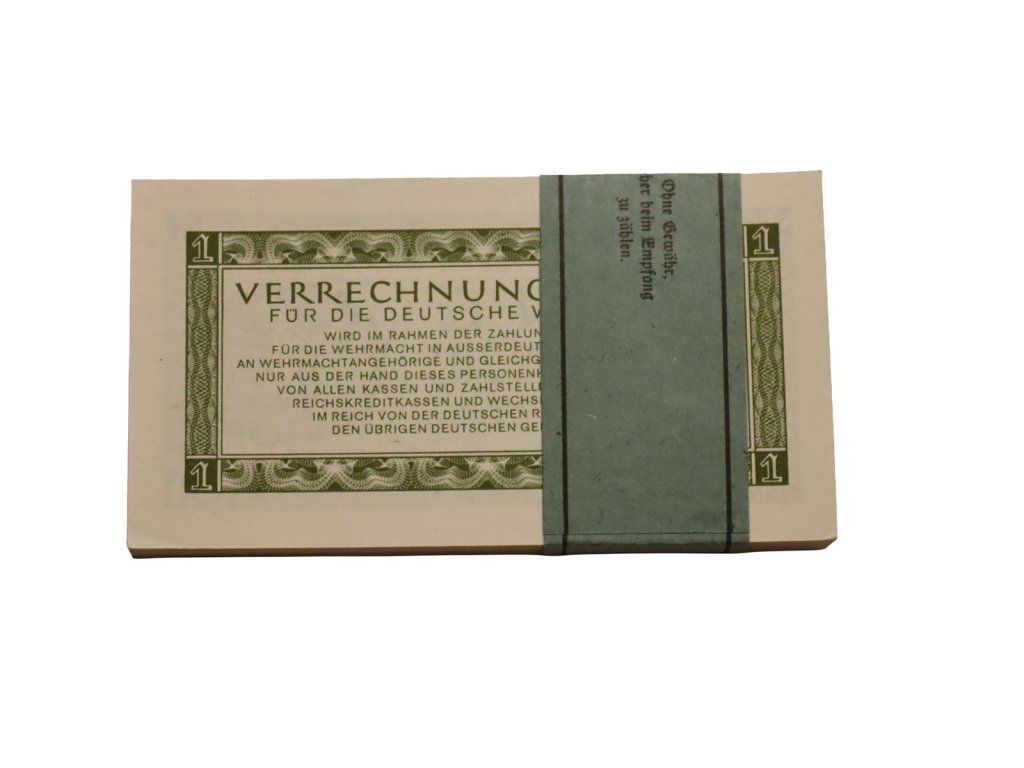 Německo, 1 RM, 1944, válečné vydání pro Wehrmacht, originální stokusový balíček bankovek pocházející z Národní banky Protektorátu Böhmen und Mähren, přebaleno původní originální bankovní páskou, luxusní původní stavy - bankovky nebyly v oběhu