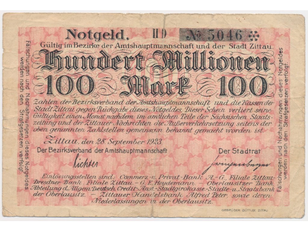 Německo, 100 000 000 Marek, 1923, oběhový stav