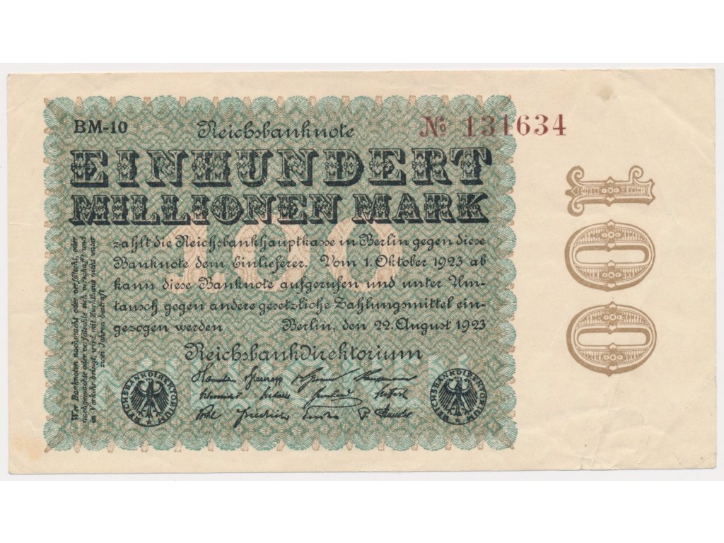Německo, 100 000 000 Marek, 1923, stav 2...viz autentické foto