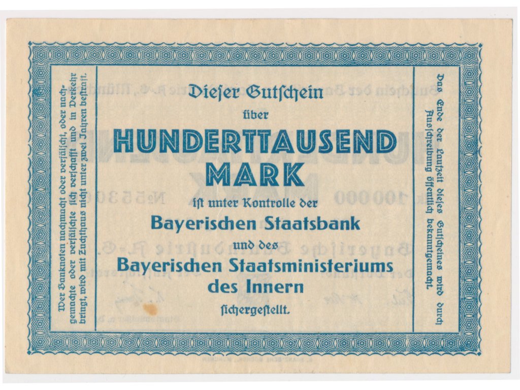 Německo, 100 000 Marek, 1923, stav 2