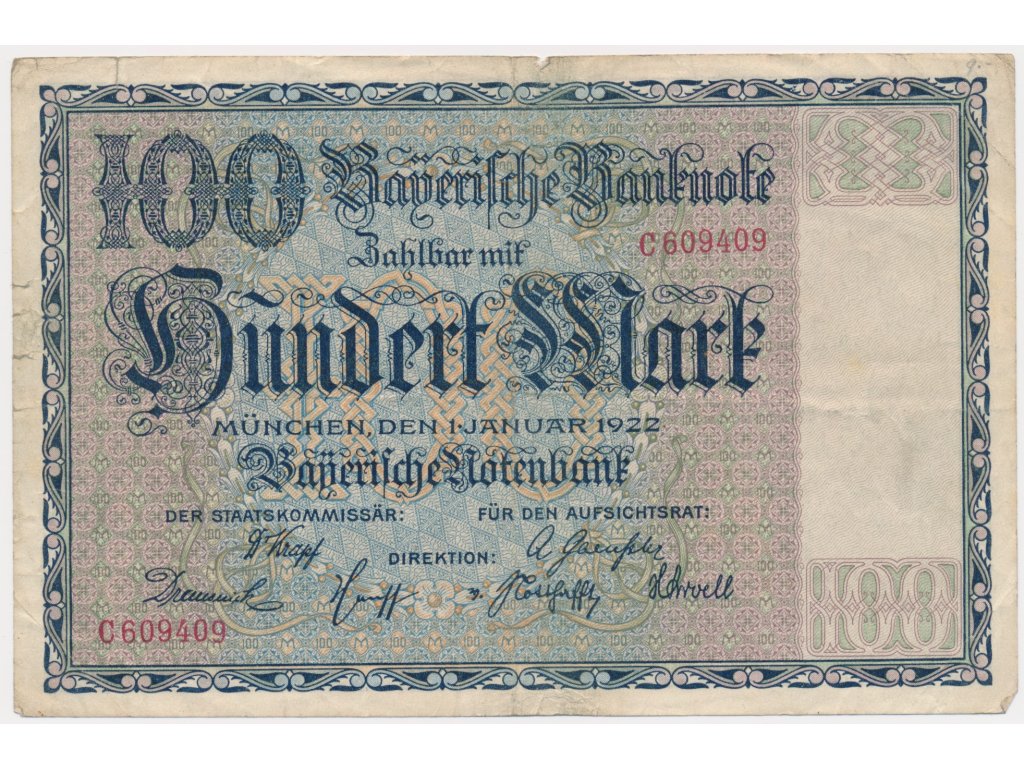 Německo, 100 Marek, 1922, oběhový stav...viz autentické foto