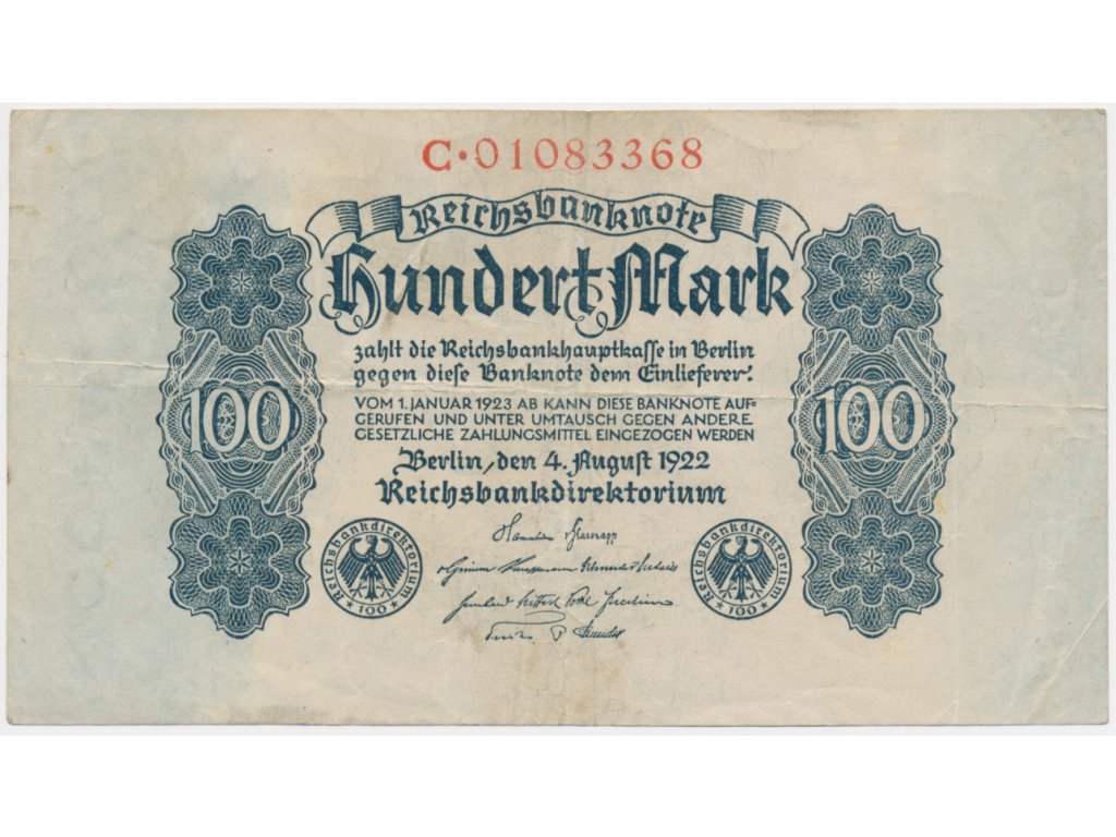 Německo, 100 Marek, 1922, oběhový stav...viz autentické foto