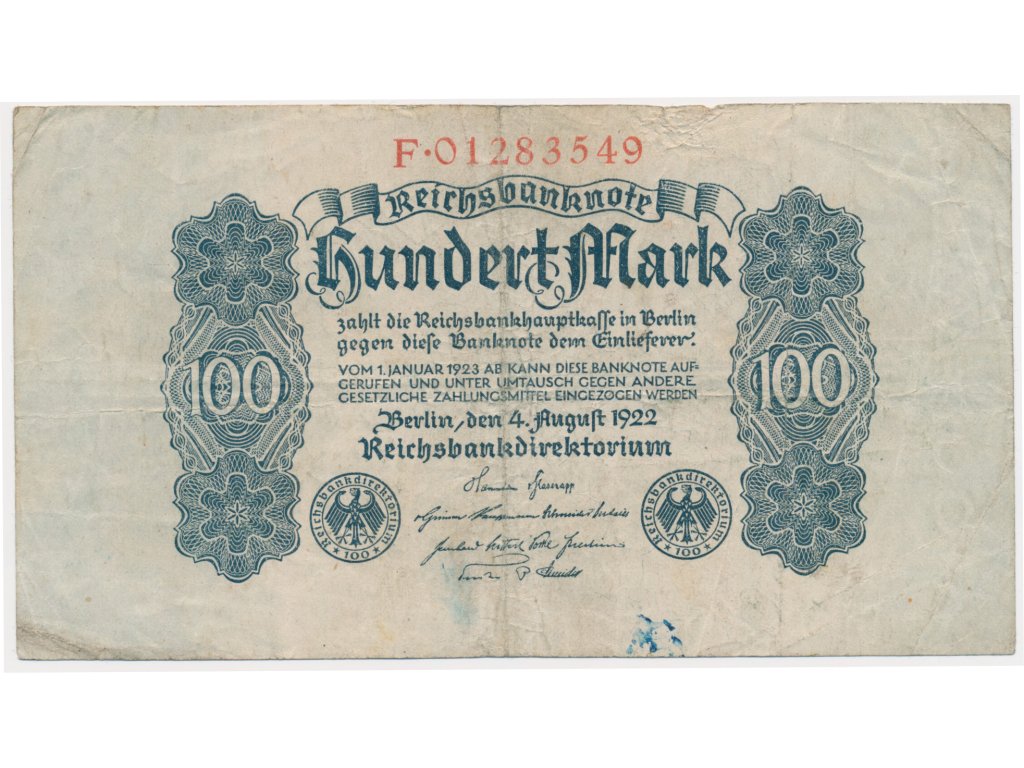 Německo, 100 Marek, 1922, oběhový stav...viz autentické foto