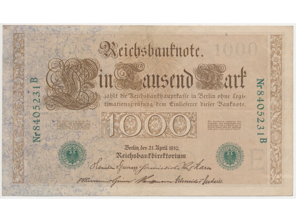 Německo, 1000 Marek, 1910, oběhový stav
