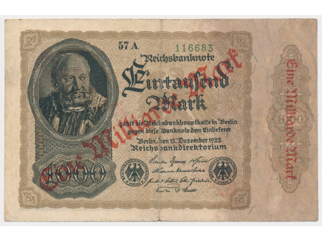 Německo, 1000 Mark s přetiskem 1 Milliarde Mark, 1922, oběhový stav