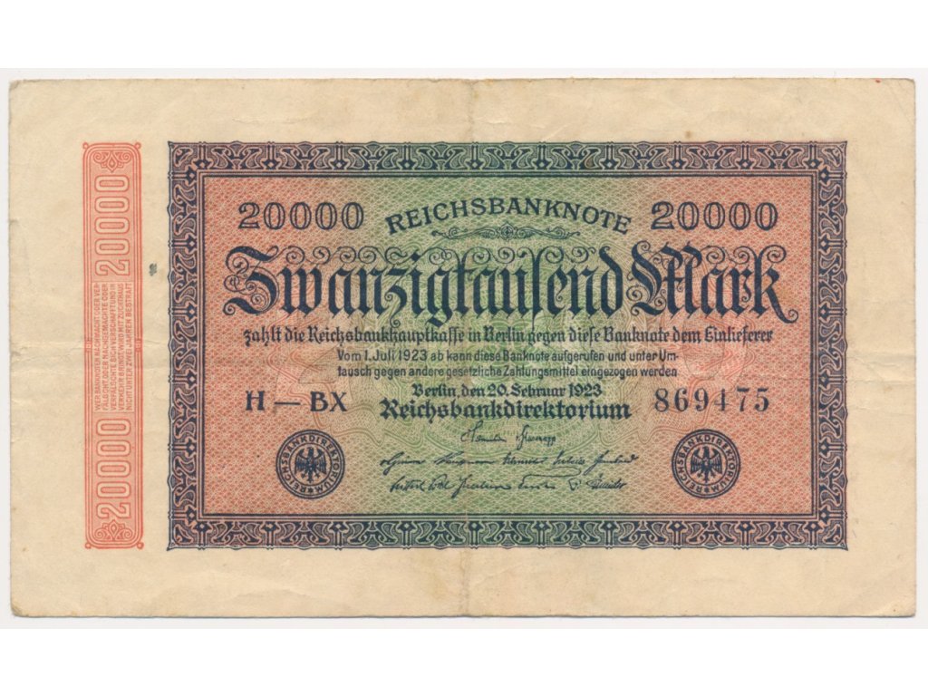 Německo, 20 000 Marek, 1923, oběhový stav...viz autentické foto
