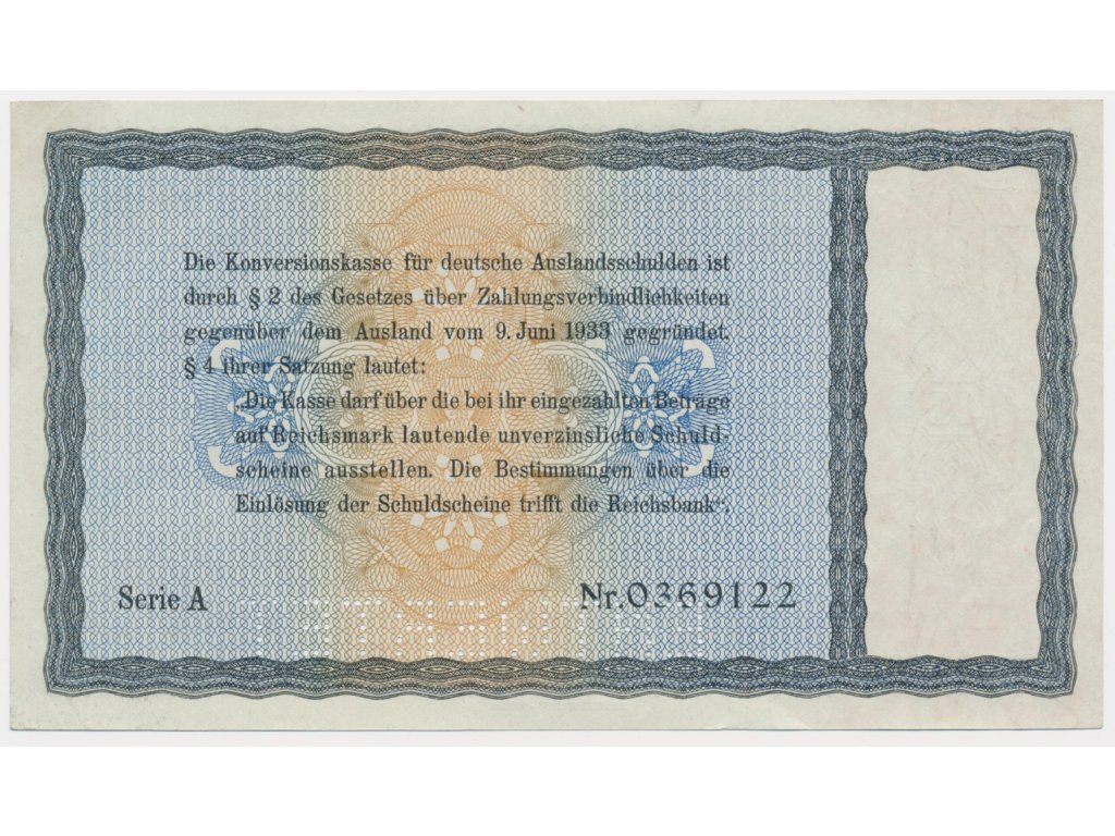Německo, 40 RM, 1933, Konversionskassenschein, perforace ENTWERTET, stav UNC...viz autentické foto