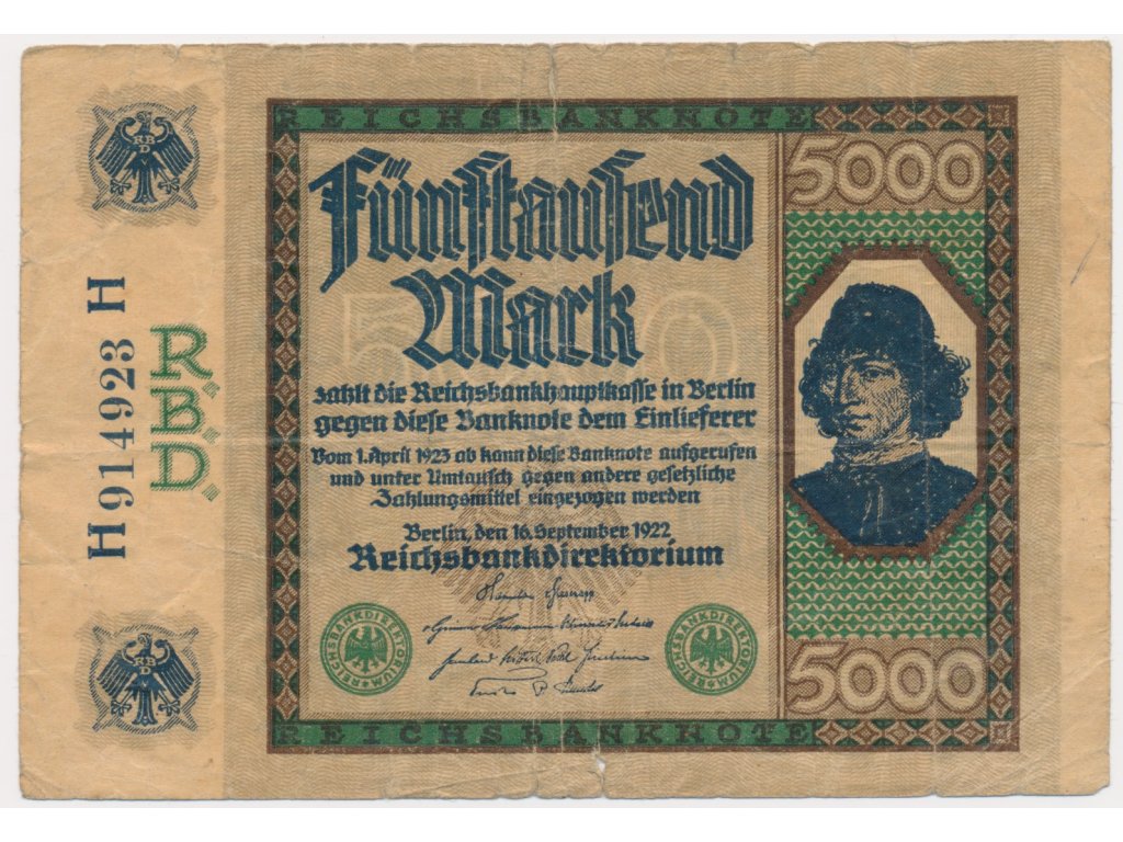 Německo, 5000 Marek, 1922, oběhový stav...viz autentické foto
