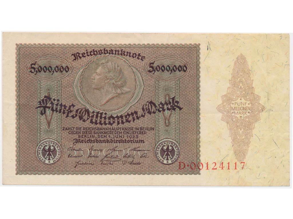 Německo, 5000000 Marek, 1923, oběhový stav...viz autentické foto