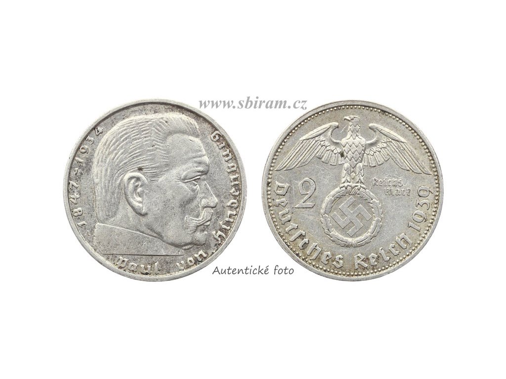Německo, Ag (stříbrná) mince 2 RM, 1939 A, Hindenburg...viz autentické foto