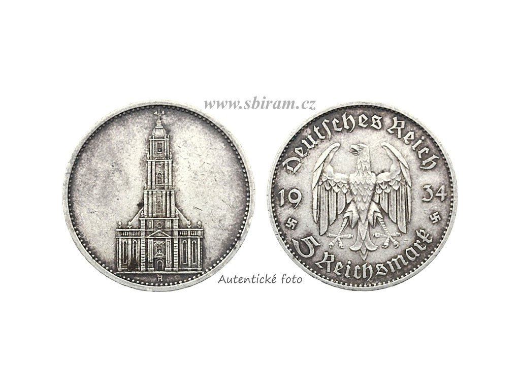 Německo, Ag (stříbrná) mince 5 Marka, 1934 A...viz autentické foto
