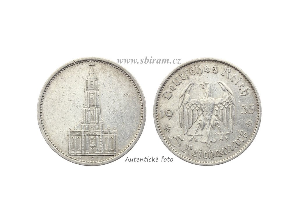 Německo, Ag (stříbrná) mince 5 RM, 1935 A...viz autentické foto