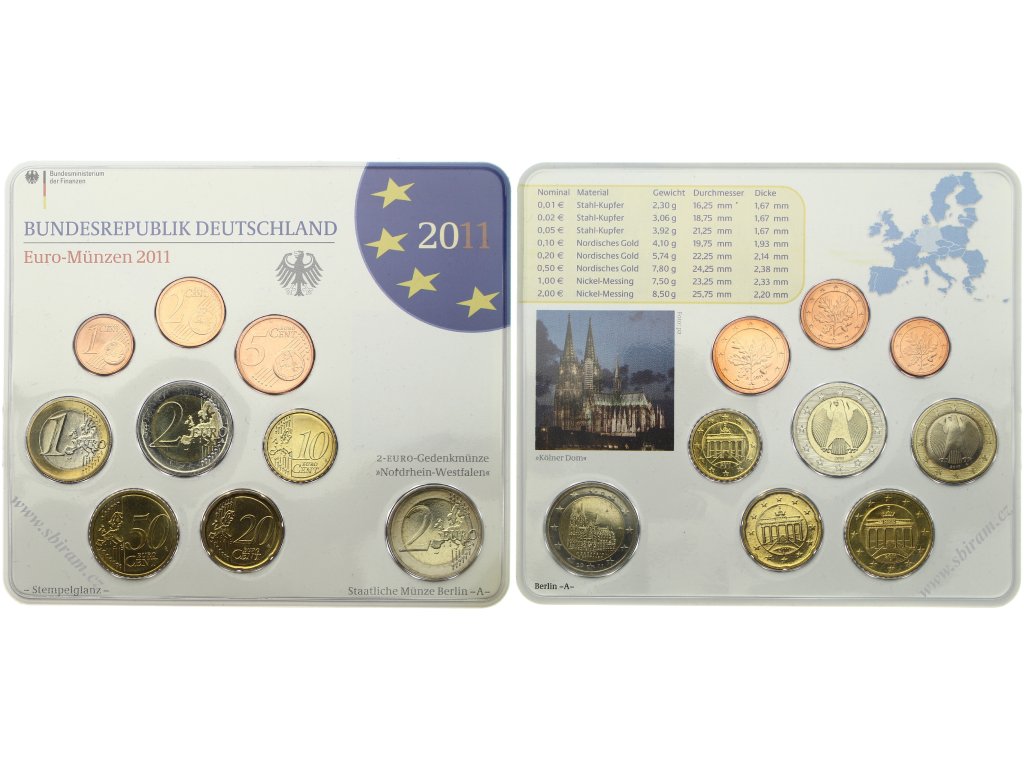 Německo, BRD, sada Euro mincí, 2011 A-Berlín...viz autentické foto