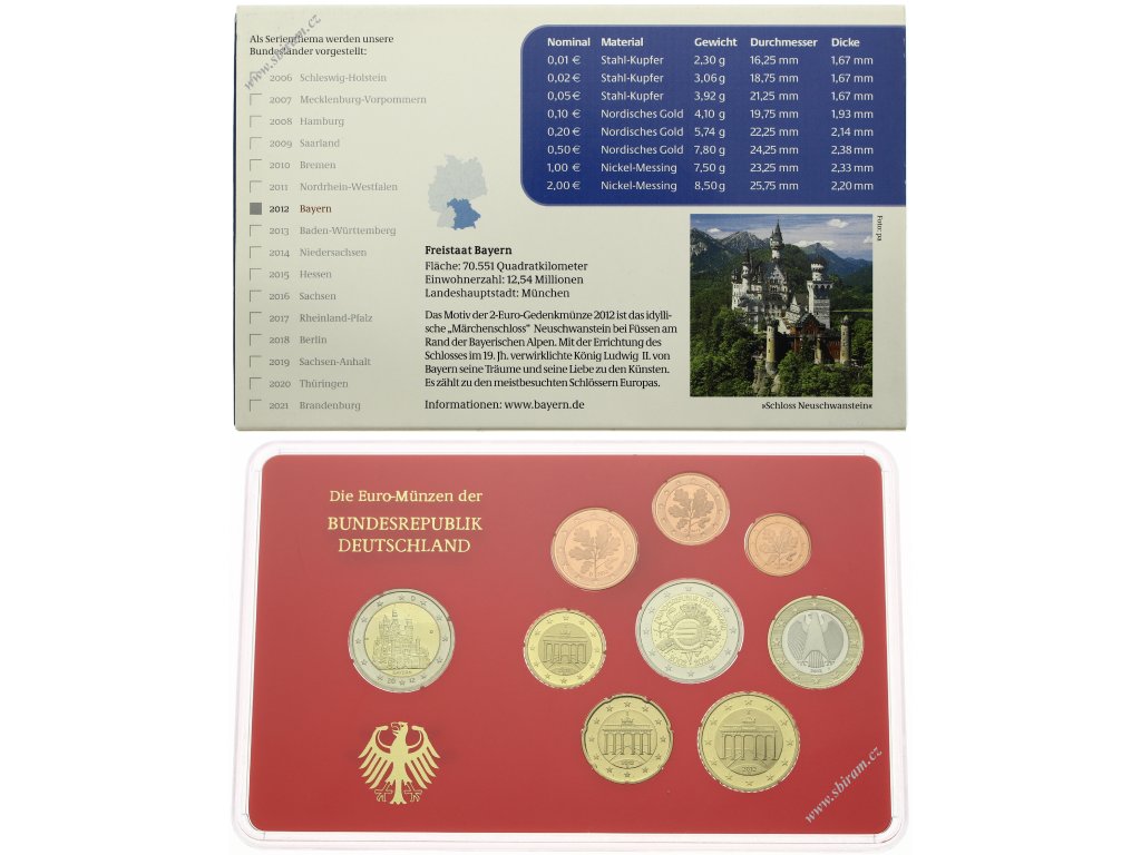 Německo, BRD, sada Euro mincí, 2012 D - Mnichov...viz autentické foto