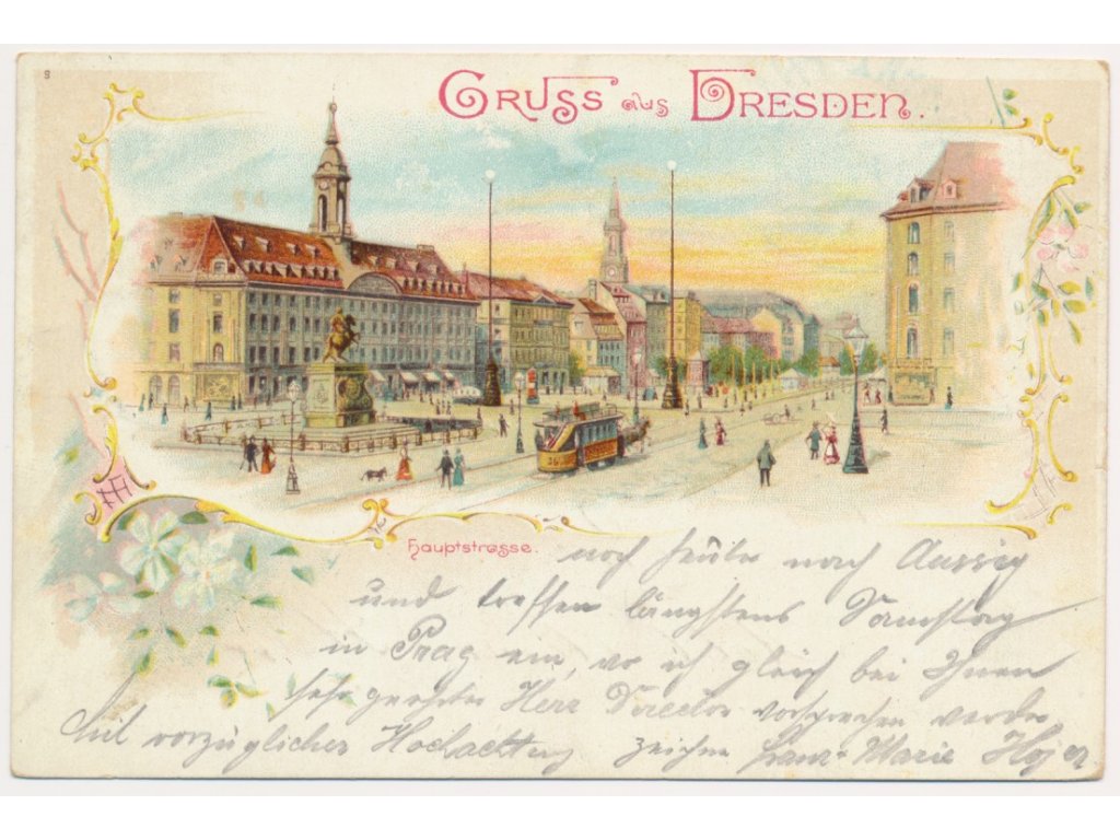 Německo, Drážďany (Dresden), koláž, Hauptstrasse, 1900