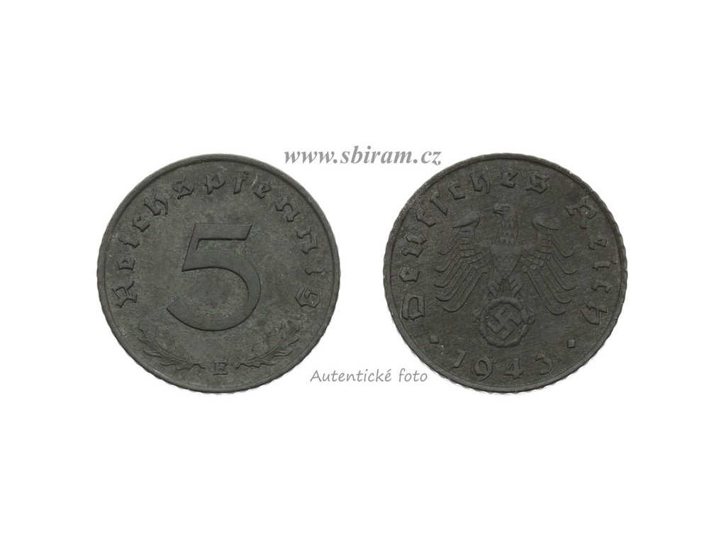 Německo, mince 5 Pfennig, 1943 E, stav 1/1...viz autentické foto