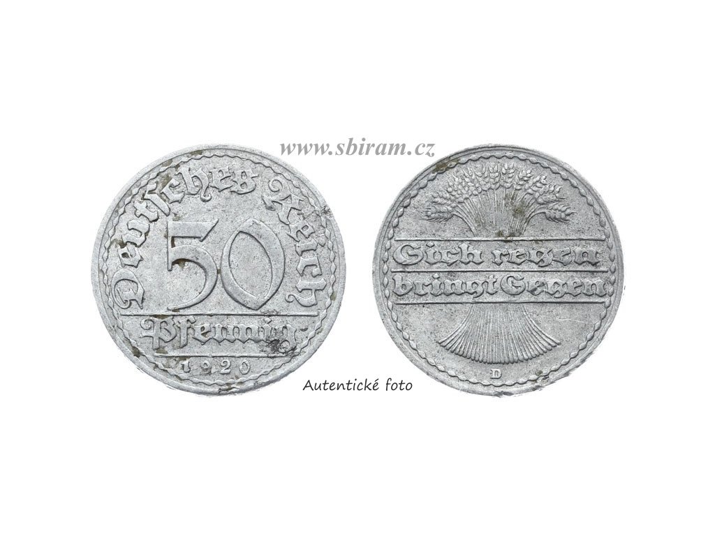 Německo, mince 50 Reichspfennig, 1920 D, stav -1/1-