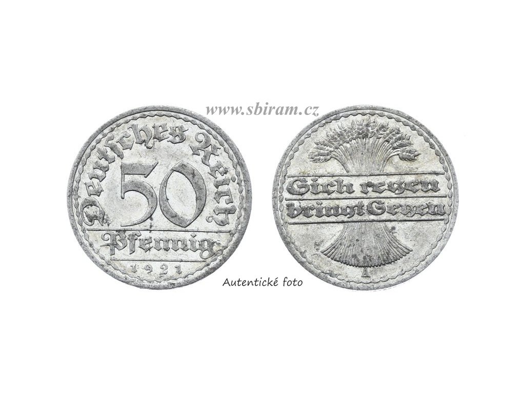 Německo, mince 50 Reichspfennig, 1921 A, stav -1/1-...viz autentické foto