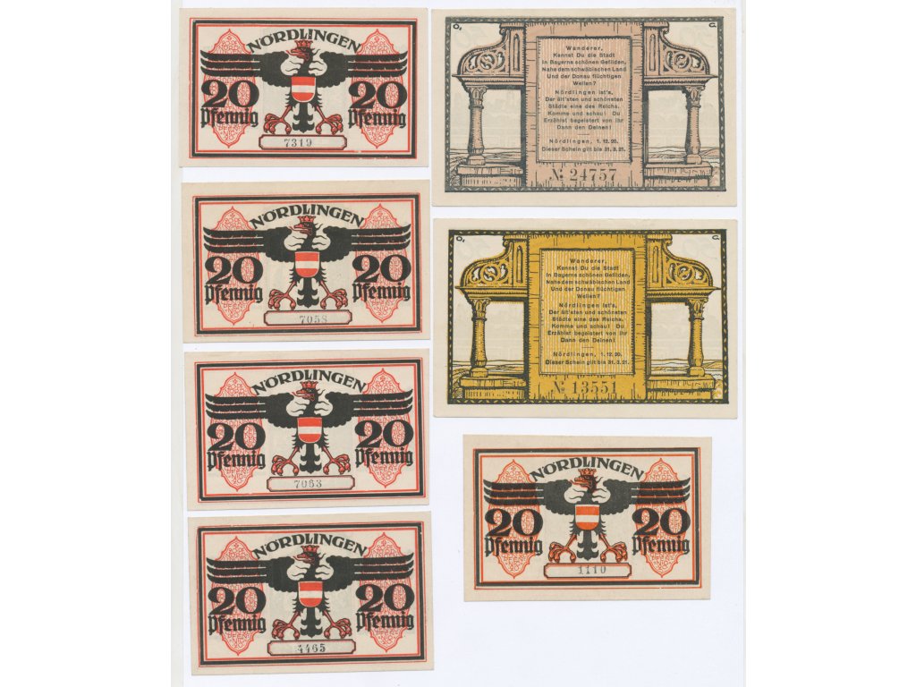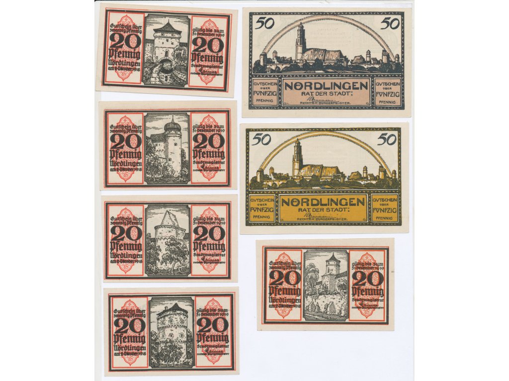 Německo, Norlingen, sestava 11-ti ks nouzových bankovek, 1921