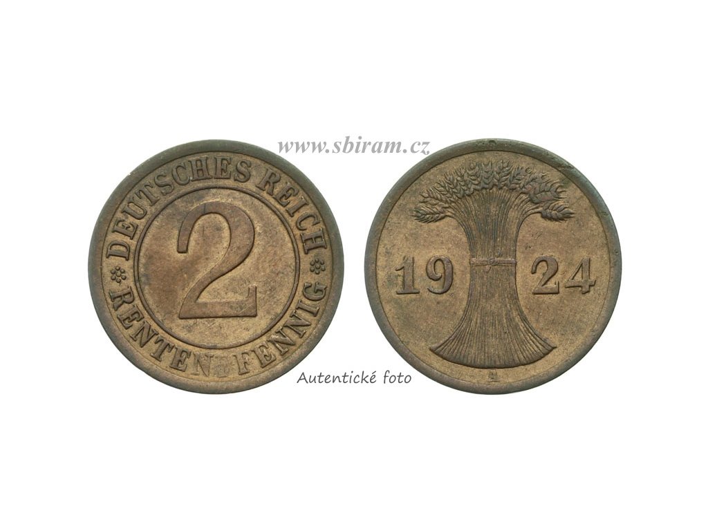 Německo, Výmarská republika, mince 2 Rentenpfennig, 1924, stav 1/1
