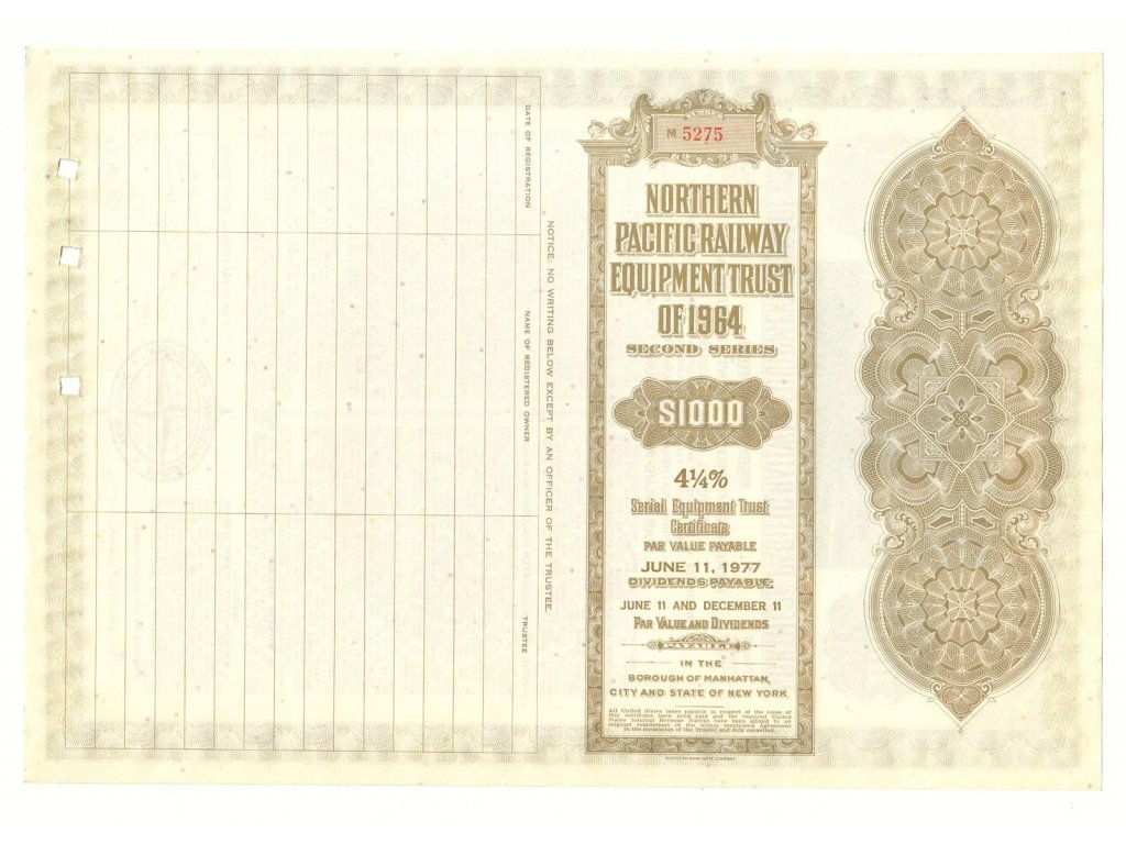 Northern Pacific Railway Equipment trust of 1964, akcie $1000