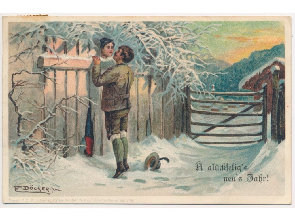 Novoroční přání, A glückselig's neu's Jahr, Zamilovaný pár, cca 1904