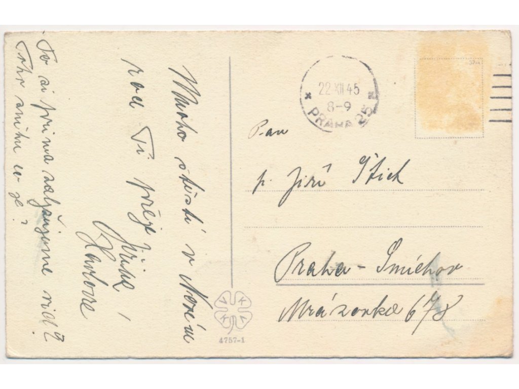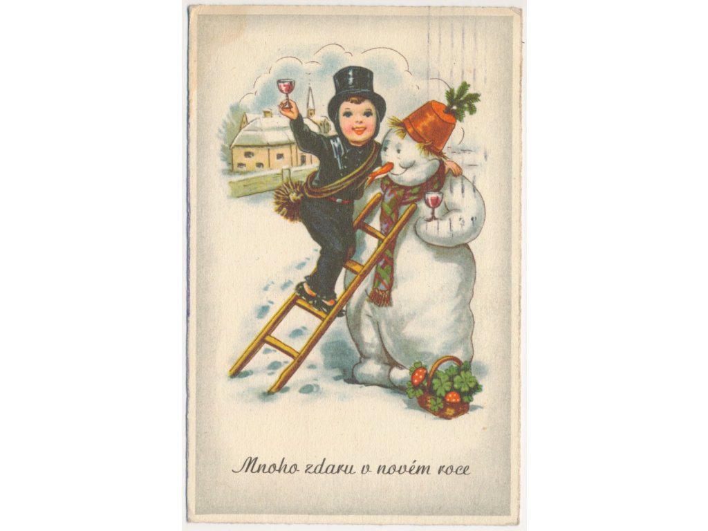 Novoroční přání, Kominík a sněhulák, cca 1945