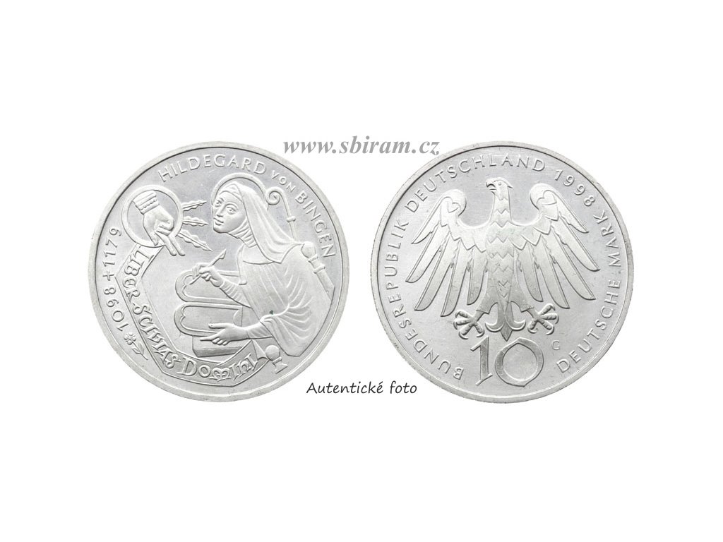 NSR, Ag (stříbrná) mince 10 DM, 1998, Hildegard von Bingen, stav -0/0-